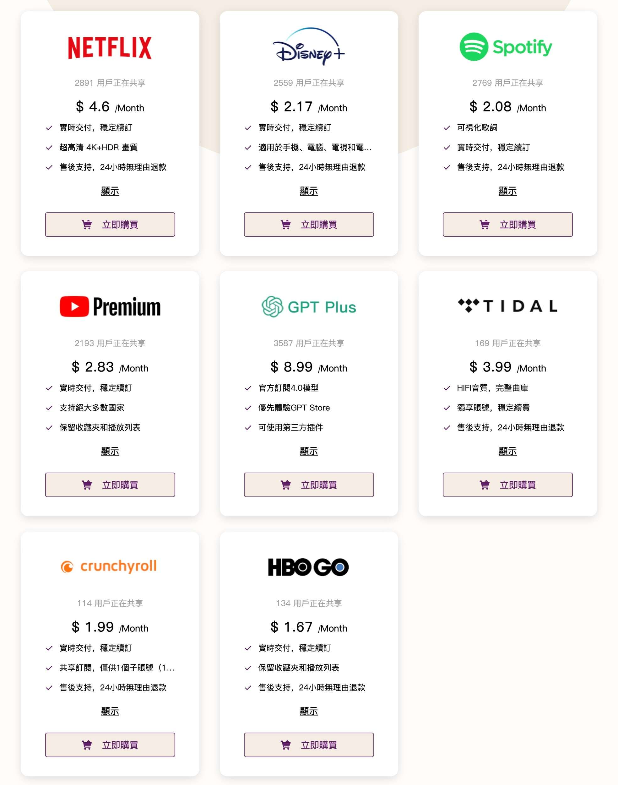 相信在這數位的時代,應該人人都有再使用訂閱服務吧?常見的音樂串流平台像是Spotify、TIDAL,抑或是影音串流平台Netflix、Disney、HBO GO、YouTube Premium、Crunchyroll,甚至是最近很熱門的AI服務Chat GPT等都是常見的訂閱服務,就以自己身邊親友為例,最常接觸的10個人當中,每個人都有1~2個訂閱,可見這個需求程度非常高阿。但在這麼多訂閱服務下,怎麼樣買才比較划算呢?這應該是每個人最想知道的問題。