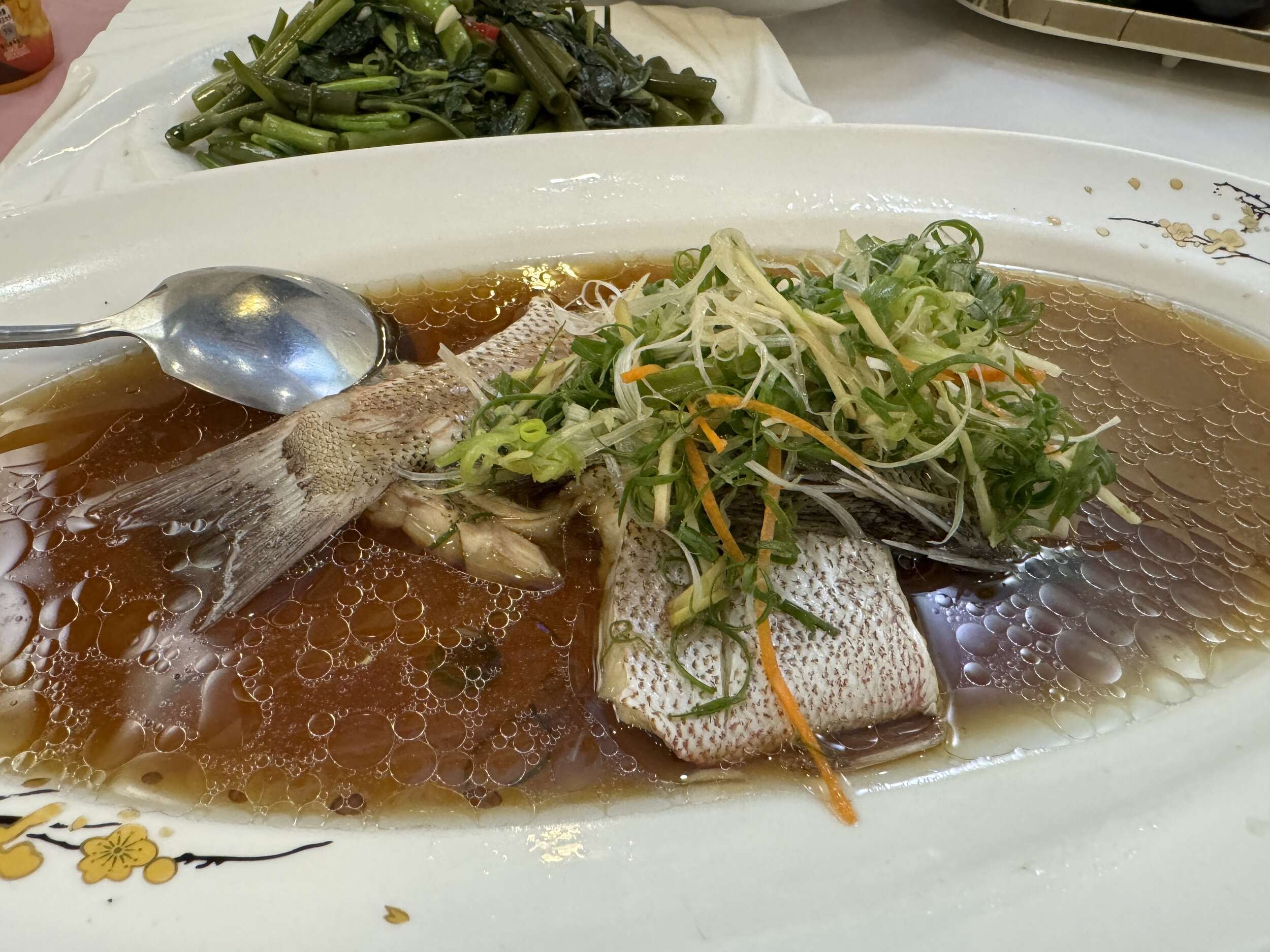 當天限定的野生紅魚,肉質非常細嫩,味道非常鮮甜好吃,只要簡單的清蒸,在淋上簡單的醬料,就是一個極為美味的佳餚,可遇不可求啊!