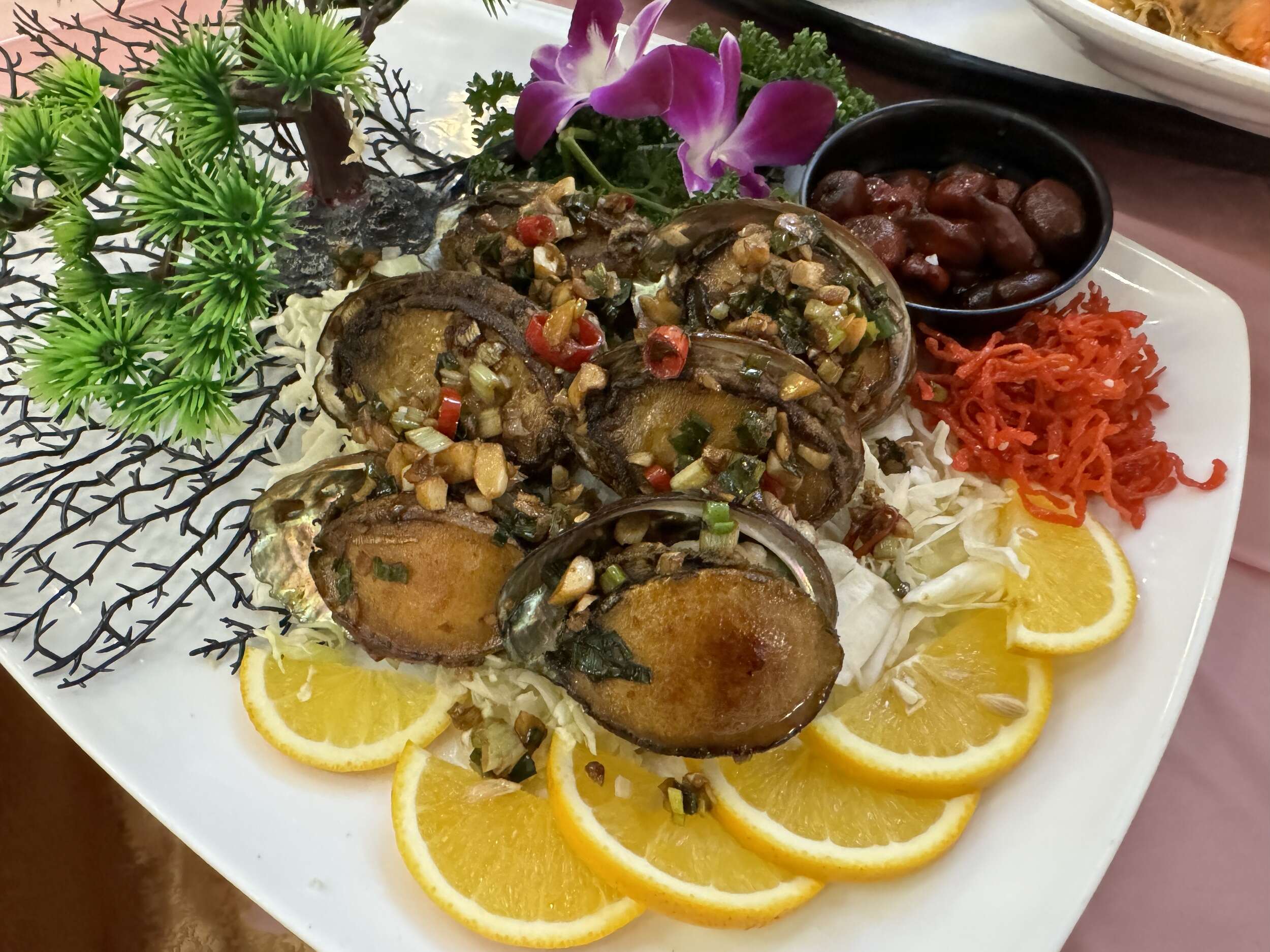 超級肥美的鮑魚,用最簡單的方法烘烤,一口咬下彈性十足,超級有勁!再來點上那獨門蒜頭辣醬油,瞬間讓鮑魚的甜美提升到另一層次,每一口都能品嚐到海洋的清新與鮮美,真的是超級鮮!